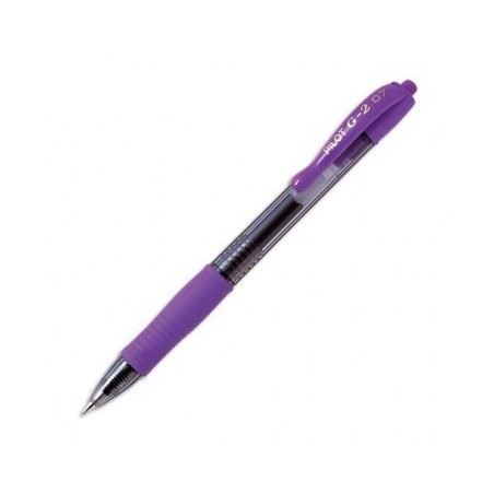 PILOT Stylo à bille pointe moyenne rétractable encre gel violet corps plastique avec grip caoutchouc G2