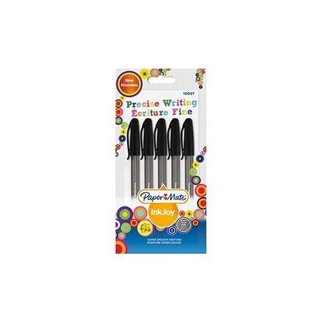 PAPERMATE Inkjoy Stylo bille capuchon. Pointe fine. Blister de 5 stylos noir.